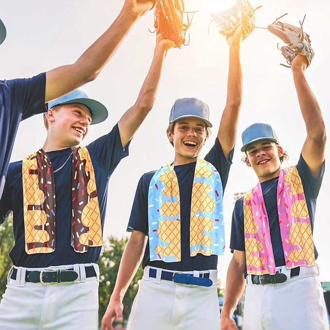 - Ideal Size: our baseball accessories measuring about 40 x 12 inches, you can easily tie these cooling towels around your neck, wear them as a headband or put them over your shoulders; They stay in place and don't fall off, making them easy to apply