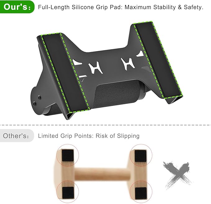 - 【ROCK-SOLID STABILITY UP TO 600LBS】The handstand bars crafted from heavy-duty alloy steel brackets and a wide, reinforced base. Our non-slip silicone pads grip any floor firmly, eliminating wobble or tipping – even during intense one-arm push-ups or handstand presses.