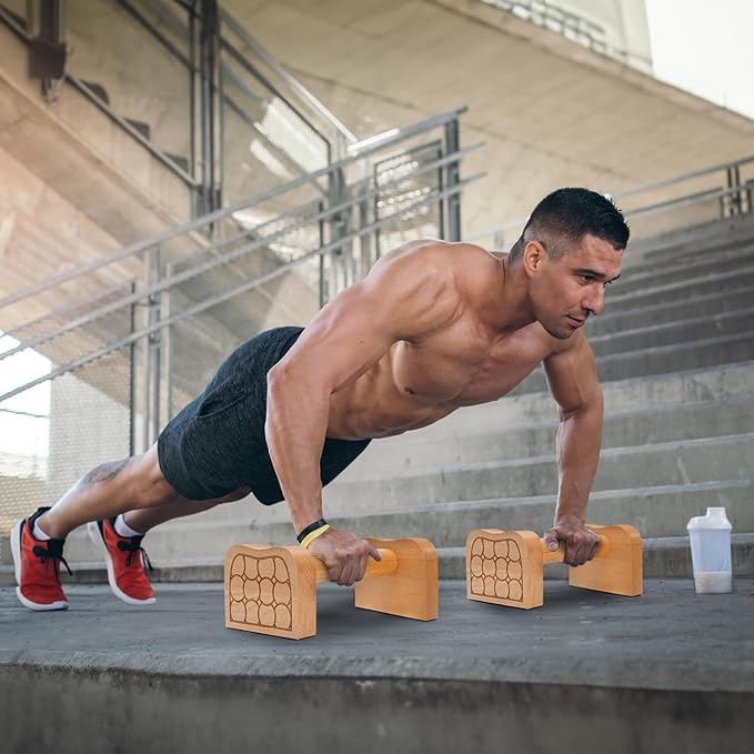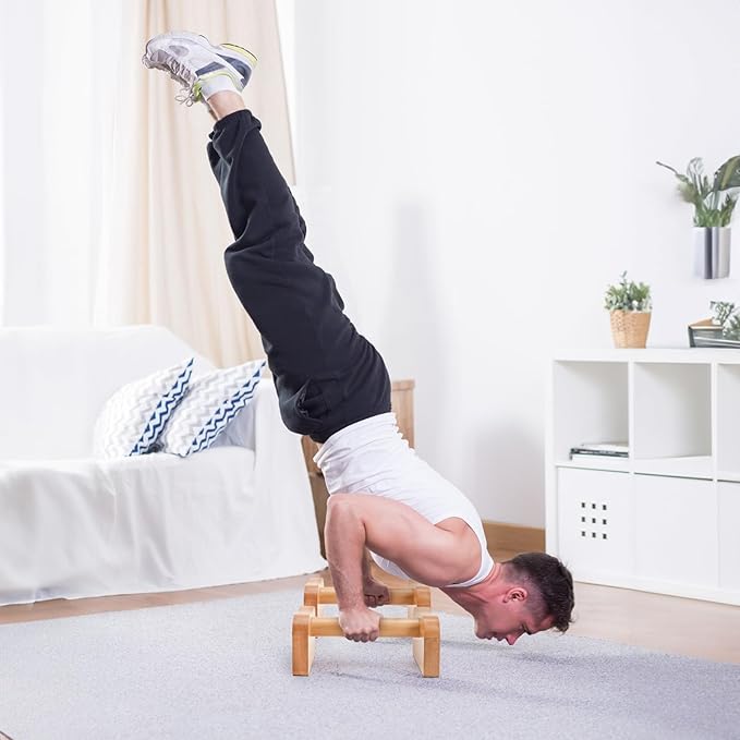 - The parallettes bars are made of European beech wood, which is solid, can withstands 400+ lbs, durable, well-made, splinter-free, triple sanding and eco-coating eliminate rough edges while protecting against sweat corrosion
