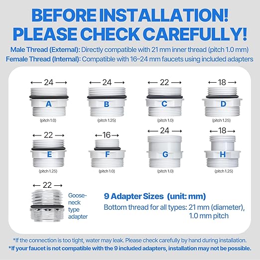 - : Included Components Faucet Filter, Teflon Tape, Wrench, Adapter x9, Rubber Ring Faucet Filter, Teflon Tape, Wrench, Adapter x9, Rubber Ring See more