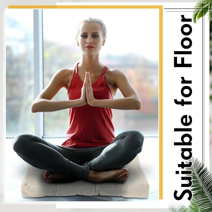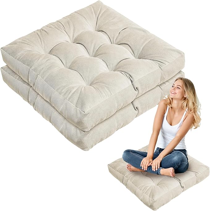 Jerify Floor Pillow Cushions 22 x 22 Inch Round Square Large Meditation Floor Pillow for Classroom Adult Meditation Picnic Party Cushion for Seating Gift Christmas(Square,Beige,2 Pcs)
