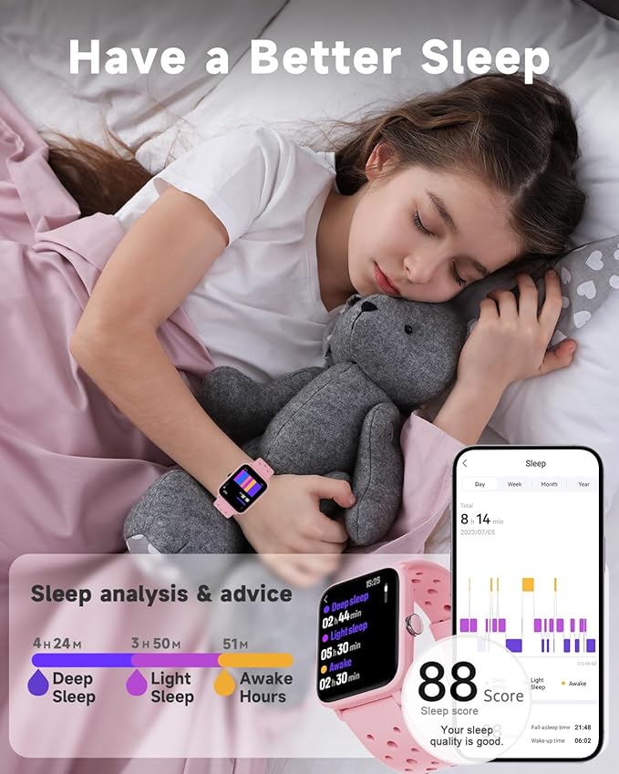 - Comprehensive Health Monitoring: Monitors real-time heart rate, and tracks sleep patterns to promote your child's well-being.