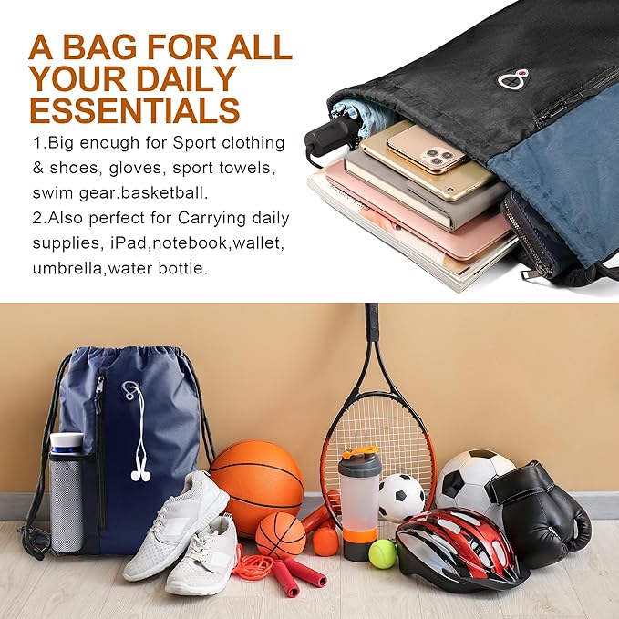 - 1 BAG FOR ALL SPORTS –Our Sports Gym Drawstring Backpack Bag Can carry basketball, soccer ball, tennis racket, wrestling, boxing gloves, volleyball, yoga mat, weightlifting, golf, paintball, travel etc.