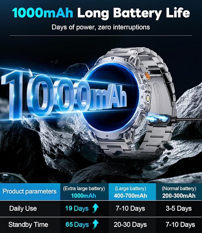 - 【1000 mAh Battery for up to 65 Days Standby】:This fitness tracker is equipped with an extremely powerful 1000 mAh battery, offering an impressive standby time of up to 65 days and over 19 days with normal use. Say goodbye to constant charging—perfect for outdoor adventures, travel, and an active lifestyle. Count on endurance and freedom—exactly what men need.