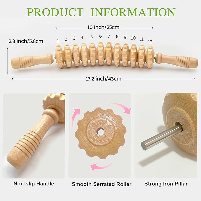 - Natural Wood & Durable Construction: Crafted from high quality natural wood, the massager features a smooth, burr free surface that’s gentle on skin. Its reinforced middle metal rod offers superior strength and toughness, preventing bending for long term use. Easy to clean: simply detach the end cap, rinse with water, and reinstall maintaining hygiene is effortless.