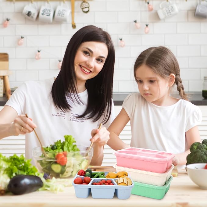 - 4 Pack: The size of the 33oz 4-compartment bento box is 5.98*9.29*2.16in.Pack of 4. Plenty of quantity and variety of styles of bento boxes to meet all kinds of daily needs, three perfectly separated compartments for balanced distribution of food without making a mess