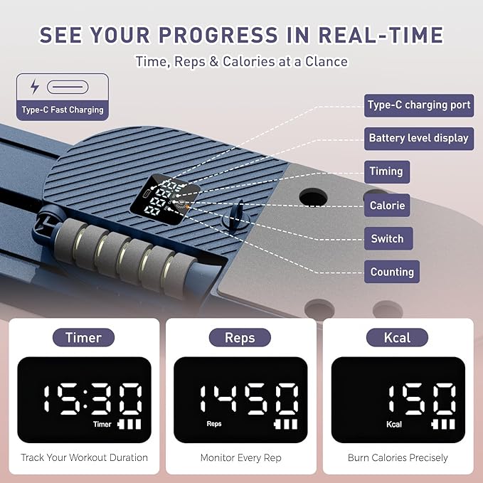 - 【All-in-One Smart Touchscreen】Our pilates reformer is equipped with an integrated smart touchscreen that accurately tracks exercise repetitions, calories burned, and workout duration in real time. It can further boost your motivation during workouts. The one-touch start/stop function and adjustable modes ensure effortless operation, while the USB charging design eliminates battery replacements for eco-friendly convenience.