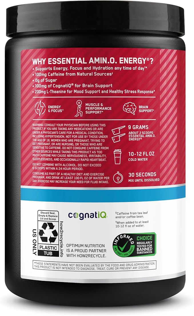 Optimum Nutrition Amino Energy Powder Plus Focus, with BCAA, Electrolytes, and Caffeine, Fruit Punch, 30 Servings (Packaging May Vary)