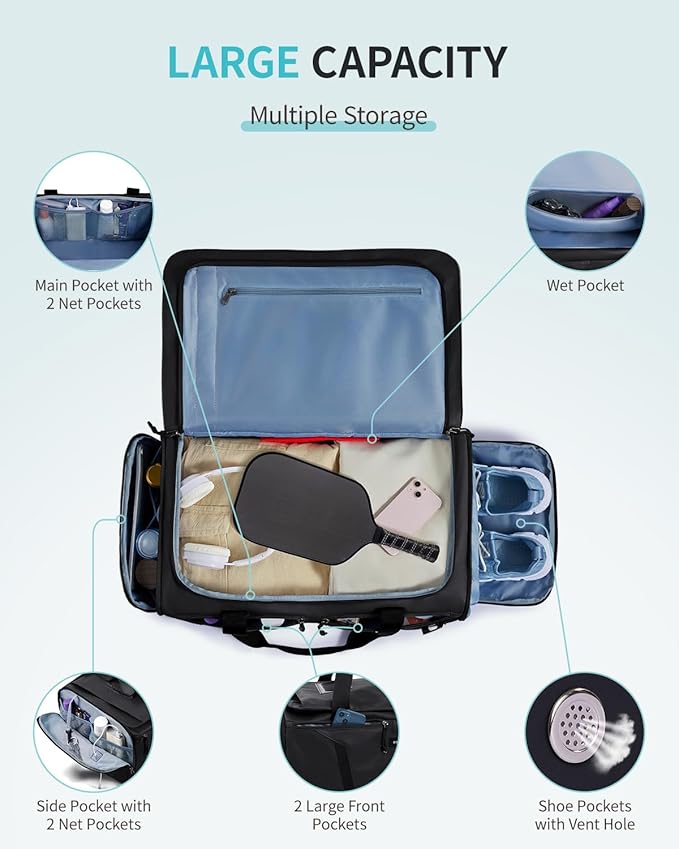- 【Spacious & Organized】 40L large capacity with multiple compartments. Dedicated ventilated shoe compartment keeps your sneakers or dirty gear apart from clean clothes, making post-gym packing more hygienic. Built-in waterproof wet pocket holds damp towels or swimwear, while multiple interior and exterior pockets keep essentials organized.