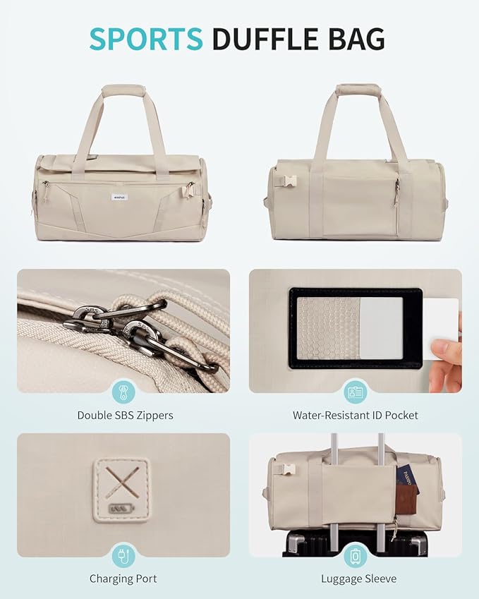 ECOHUB 40L Gym Bag for Women Men Water Resistant Sports Duffle Bag with Shoes Compartment& Wet Pocket, Travel Weekender Camping Backpack