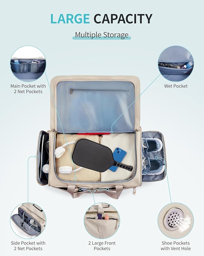 • 【Spacious & Organized】 40L large capacity with multiple compartments. Dedicated ventilated shoe compartment keeps your sneakers or dirty gear apart from clean clothes, making post-gym packing more hygienic. Built-in waterproof wet pocket holds damp towels or swimwear, while multiple interior and exterior pockets keep essentials organized.