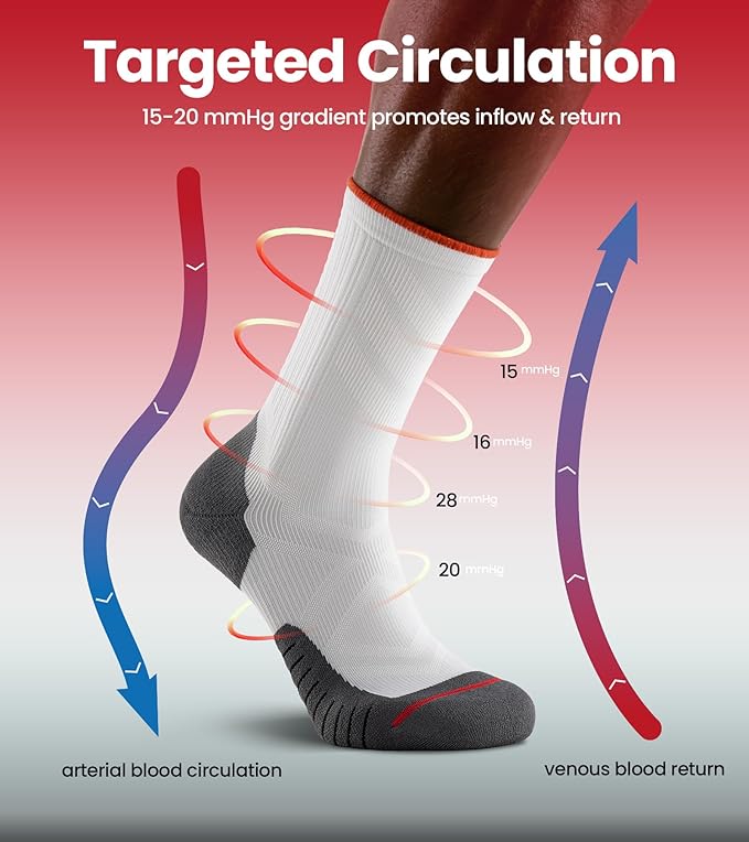 - Comfortable & Non-Slip Athletic Socks: The anti-slip strip and compression cuff ensure these running socks men stay firmly in place during intense workouts, running, or daily activities—no slipping without constriction. Ergonomic arch support reduces fatigue by 27%, while the seamless toe offers a snug, flexible running socks fit that moves naturally with your footfoot — blister-free.