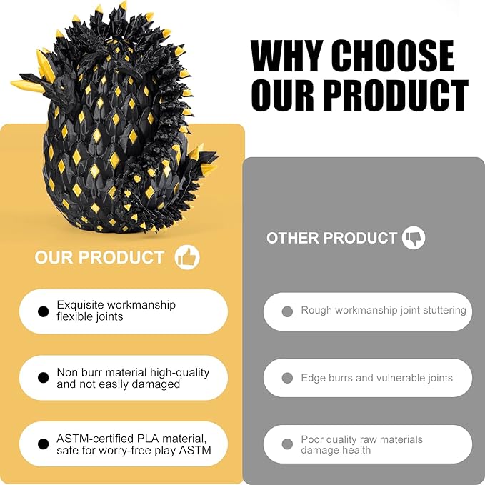- 【Eco-Safe & Kid-Friendly Dragon Toy for Ages 4+】Crafted from non-toxic, child-safe PLA material with smooth, rounded edges. A safe dinosaur toy and sensory fidget for kids 4+, ideal as a first dragon toy for toddlers or a cool desk animal for older kids and adults