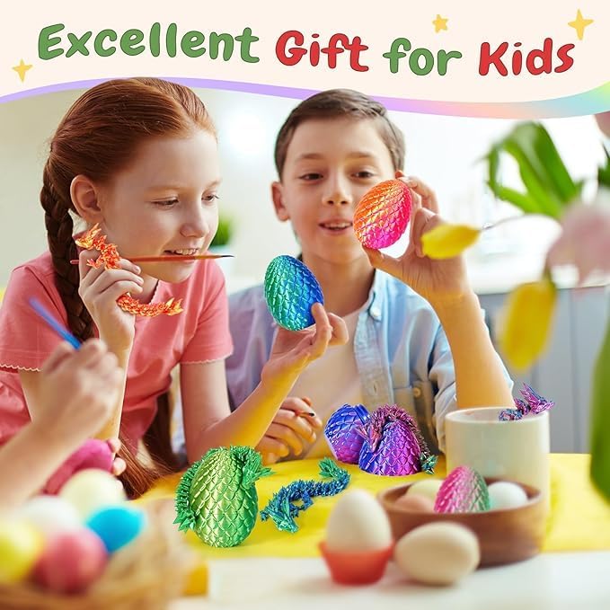 - 【Vibrant Dragon Egg Set】Get ready for delightful surprises this Easter with our set of 4 colorful dragon eggs! Each egg conceals a lifelike dragon, perfect for inspiring creativity and adding a touch of magical decor to your home.