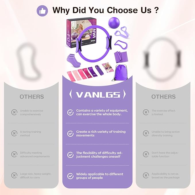 - [All-in-One Pilates Kit for Women – Full Home Workout Solution] This complete home pilates set includes 13 essential pieces - 13" pilates ring, 10" exercise ball, figure 8 resistance band, stretching strap, yoga socks, resistance band, arm exerciser, 5-level resistance bands, and storage bag. It offers everything needed for an home pilates kit, making it ideal for at home workout equipment