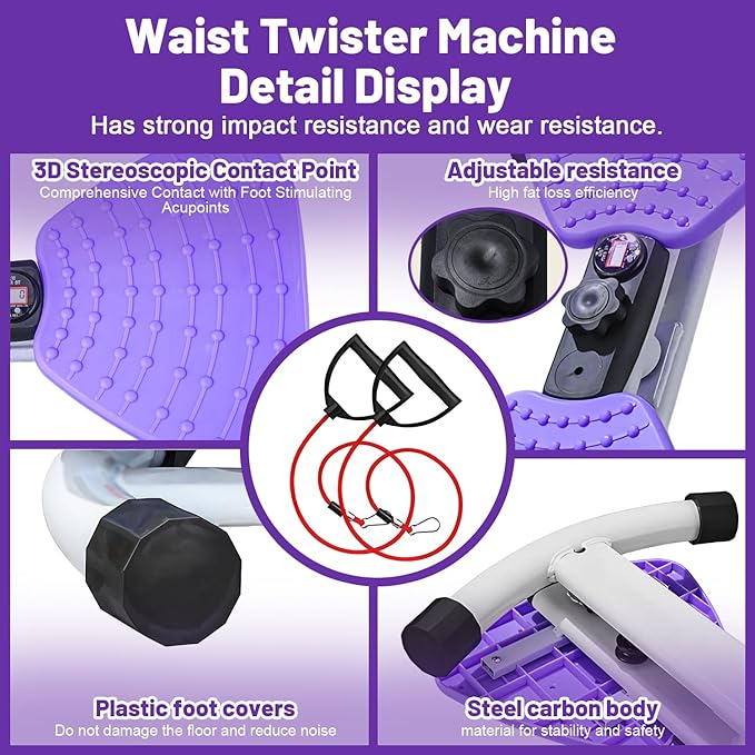 - 【Smart Digital Counter】Waist Twist Machine is equipped with a display screen that can intelligently track the number of movements and record training time in real time, allowing you to accurately grasp your training progress and say goodbye to the hassle of manual counting-This waist twister machine is a fitness equipment designed specifically for different levels of fitness.