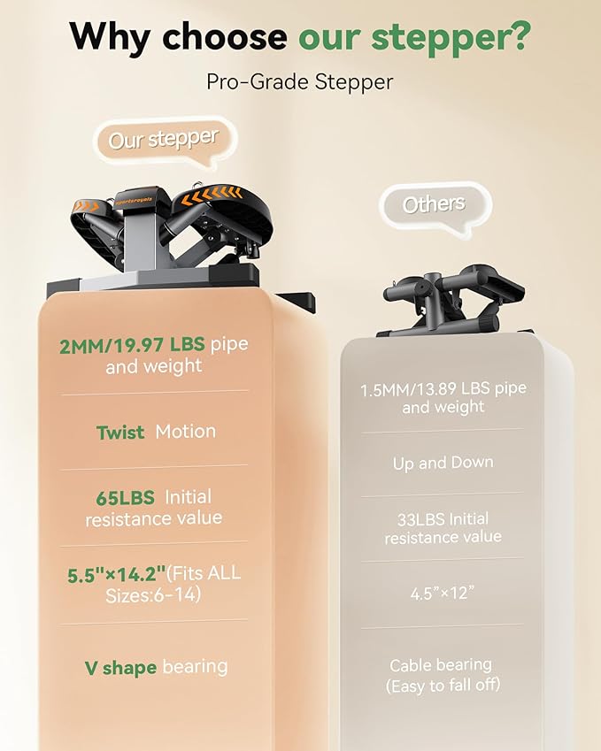 - 【Quiet and No Oil Leakage】This stepper utilizes a smoother and quieter hydraulic system. The dual hydraulic cylinder design ensures stability and increased resistance while reducing noise from friction, and the perfect sealing design makes it oil-free and a better companion for your fat-burning.