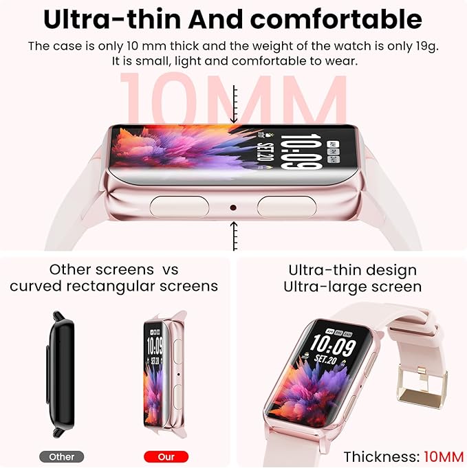 - 【Curved Long Screen & Enhanced Visual Experience】This smartwatch features a 1.57-inch curved ultra-clear full-touch rectangular display, upgrading both visuals and fingertip control. Compatible with Android and iOS, it stays crystal-clear even under bright sunlight. FitCloudPro offers a vast cloud-based watch-face store—switch styles with one tap or set your favorite photo as the dial to keep your personality always on show.