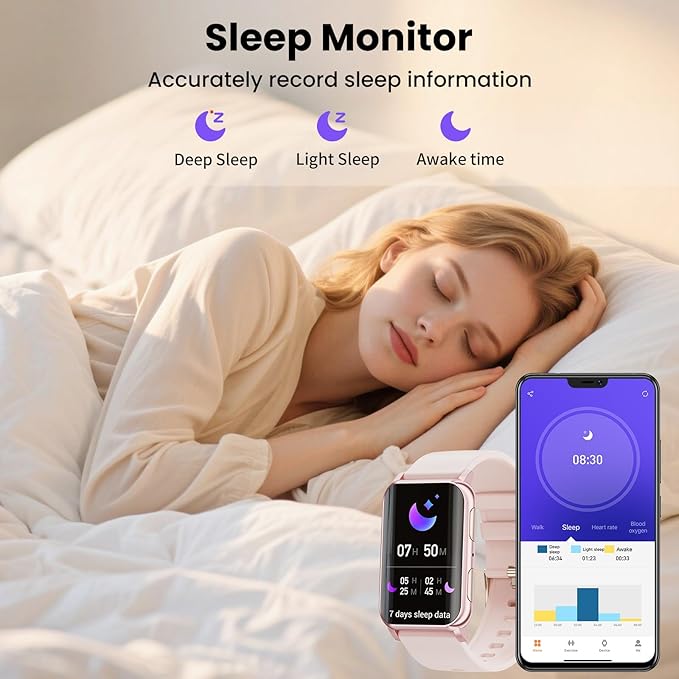 - 【Comprehensive Health Monitoring】Lightweight and user-friendly, this fitness smartwatch tracks heart rate, blood-oxygen levels, and sleep. It delivers detailed sleep-quality analysis, helping you understand and improve your rest. Check recent data on your wrist or in the app anytime, anywhere, for a healthier lifestyle.