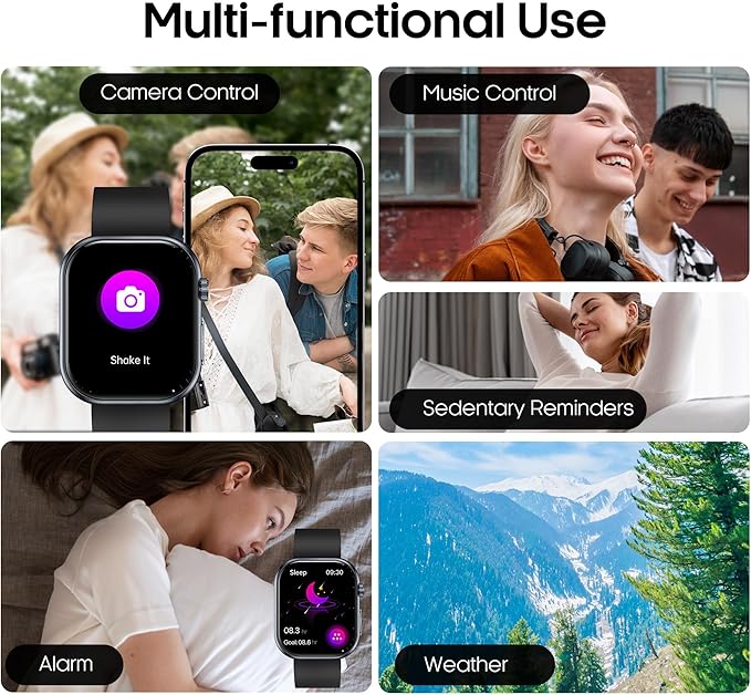 - 【Bluetooth 5.3 Call, Message Reminder and Voice Assistant】The phone watch uses Bluetooth 5.3 technology to provide faster and more stable connections. The built-in microphone and Hi-Fi speaker effectively reduce background noise to ensure clear calls. Vibration reminders for text messages and social media notifications (Facebook, WhatsApp, Twitter), large screen clear display. Easily operate everything through voice commands.