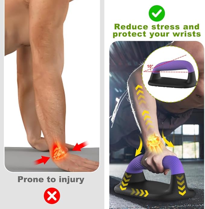 - Ergonomic Push-Up Handles for Wrist Relief: Lifeswell push-up bars feature a scientifically designed slight angle that aligns with your wrist’s natural position, reducing joint strain during workouts. These floor push-up handles are ideal for strength training, helping you perform deeper, safer, and more effective push-ups