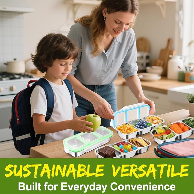 - 【Environmentally friendly & Reusable – A Smarter Choice Than Plastic】Unlike flimsy plastic snack containers that warp, stain, or absorb odors, our stainless steel food storage containers are 100% recyclable and built to last. Reduce single-use waste with a sturdy snackle box container that’s dishwasher-safe and won’t retain food smells.