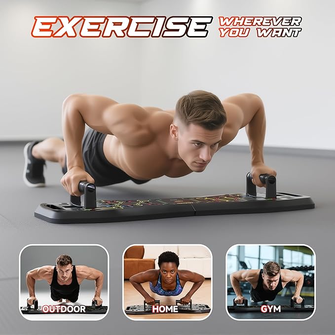 - DURABLE & USER-FRIENDLY DESIGN Built to last from high-quality, BPA-free materials that withstand intense daily workouts. The ergonomic push up handles offer a secure and comfortable grip. Its intuitive design makes this home exercise equipment perfect for everyone seeking a reliable and effective fitness routine, regardless of fitness experience