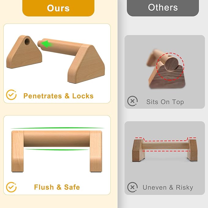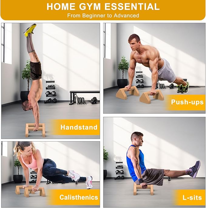 - Natural Wooden Grip & Comfort: Experience the superior comfort of solid beech wood push up handles. These push up bars for men and women provide a smooth, natural grip that reduces wrist strain and enhances floor workout performance