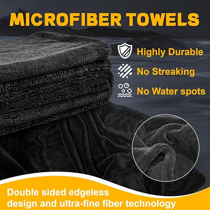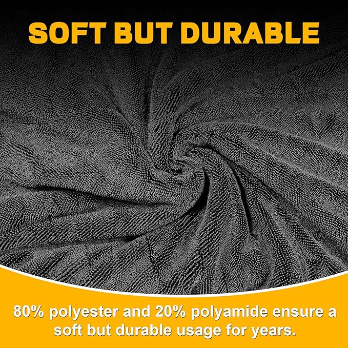 - Streak-Free Drying:The car drying towel adopts advanced new twisting technology and 1600 GSM ultra-fine fiber process,which forms countless fine water absorbing braids on the surface of the towel,truly achieving stripe free drying.It is an indispensable specialized water absorbing towel in automotive beauty operations