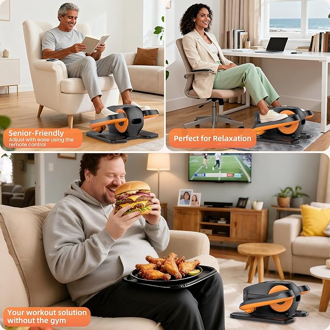 - 5.Portable, Fully Assembled & Thoughtfully Giftable: Arrives fully assembled—simply unbox and begin your exercise routine immediately.Features a compact design with convenient carry handle, it fits most desks and can be relocated from room to room with ease. The package includes: Elliptical Machine, Remote Control, Power Adapter, Non-Slip Mat, and User Manual,an ideal choice for those seeking to maintain activity, support wellness, and stay energized throughout the workday or at home.