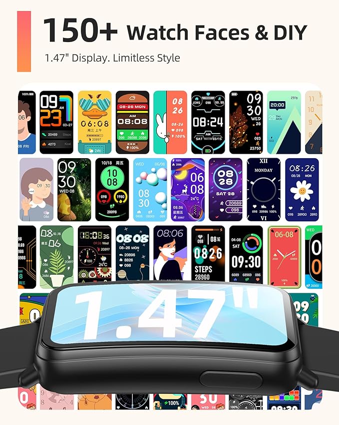 - 【1.47” ULTRA-SLIM & LIGHTWEIGHT HD TOUCHSCREEN WITH 150+ WATCH FACES & DIY】Experience the future of smartwatches with the Parsonver Pedometer Watch. Its stunning 1.47-inch HD display delivers crystal-clear visuals and a sleek, lightweight design for all-day comfort. Enjoy perfect clarity in any lighting and express your style with 150+ customizable watch faces—or upload your favorite photos to create a truly unique look. Slim, stylish, and powerful, this smartwatch makes you stand out every day!
