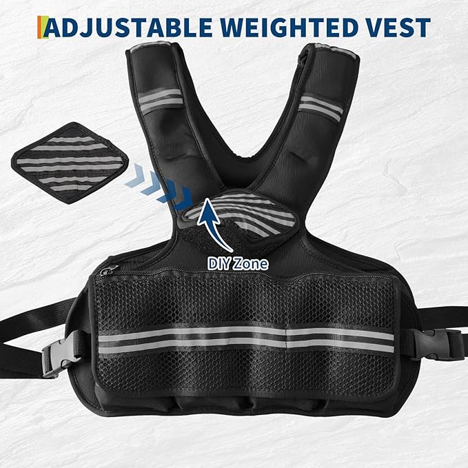Adjustable Weighted Vest for Men & Women, Body Weight Vest with Reflective Stripe and Mesh Pocket, Workout Gear for Walking, Jogging and Strength Training