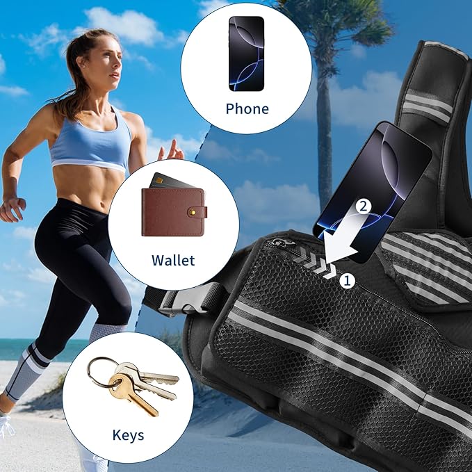 - Reflective Stripe for Enhanced Safety: Built-in reflective stripes keep you visible during early morning or evening walks, jogging, and outdoor training. Enjoy safe exercise with this weight vest, designed for low-light environments
