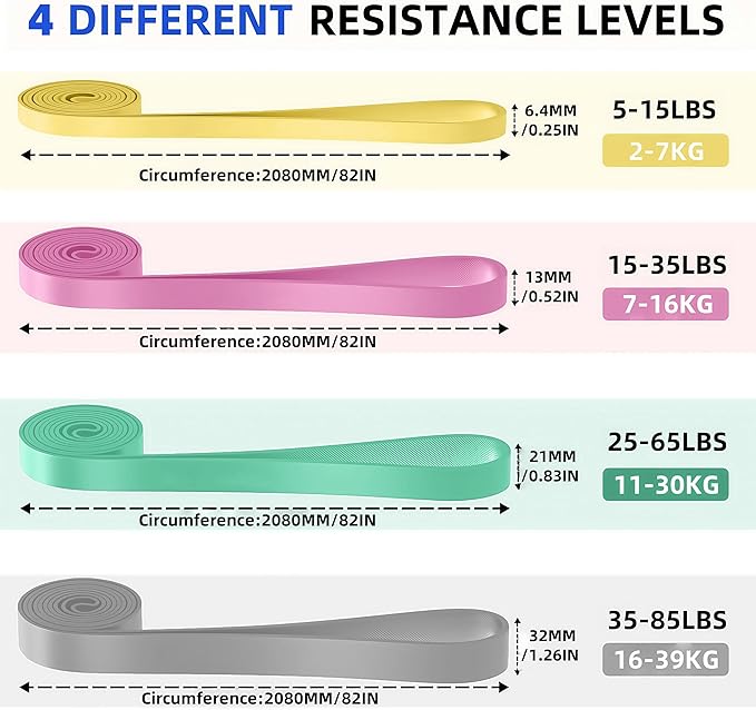 - 【Multipurpose Full Body Workout】The gym bands is perfect for men and women tone their arms,back,legs,and butt, chest,core, ABS and increase your body flexibility. These exercise bands is ideal for pull up assistance, adding resistances to press-up,speed training,bench press,squat,shoulder press etc.Our stretch bands also show their excellent performance in physical therapy,weight loss,injury rehabilitation, speed training and more
