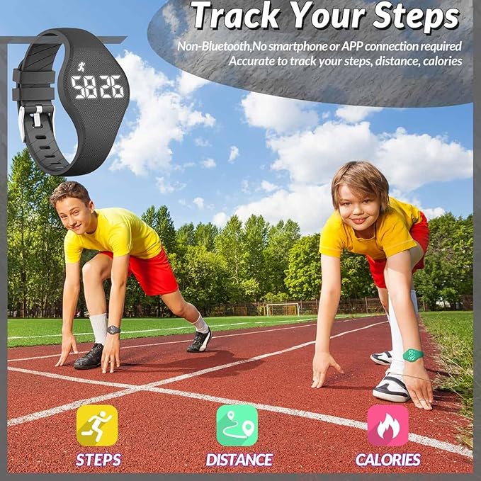 - [ Kids' Basic Fitness Tracking Watch ]: Engineered to precisely track steps independently, no smartphone or app pairing required.