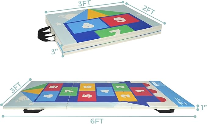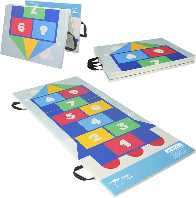 - 【DUAL-PURPOSE PLAY & FITNESS MAT】Transform the gymnastics mat into an action zone! Kids master cartwheels and somersaults on the tumble mat, then flip the script with the built-in hopscotch grid - numbered squares spark imaginative play while developing coordination. More than a tumbling mat for kids, it's two-in-one fun