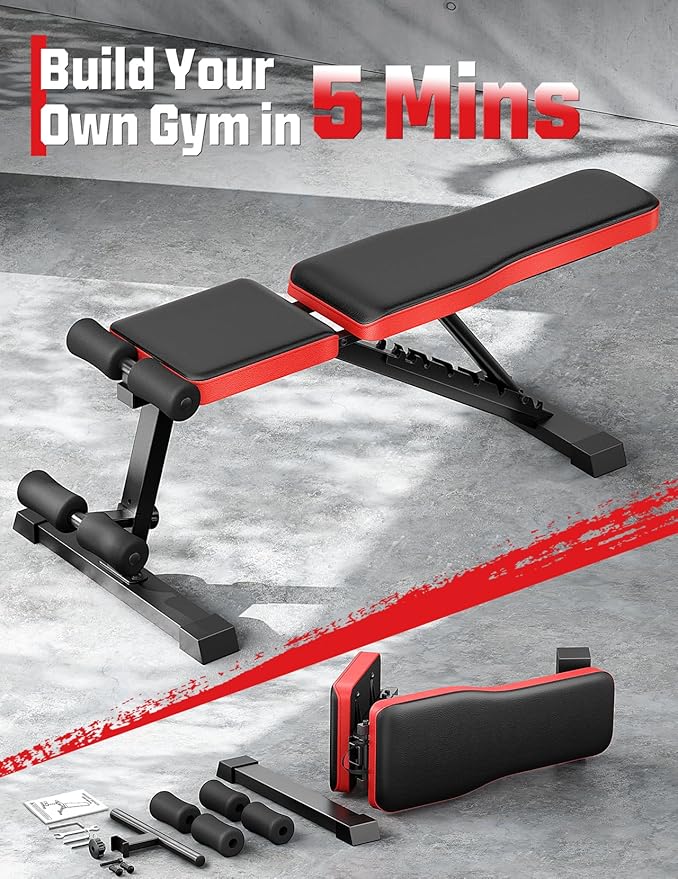 Adjustable Weigh Bench, Workout Bench for Home Gym, Adjustable & Foldable Workout Bench, Bench Press Sit up Incline Flat Decline