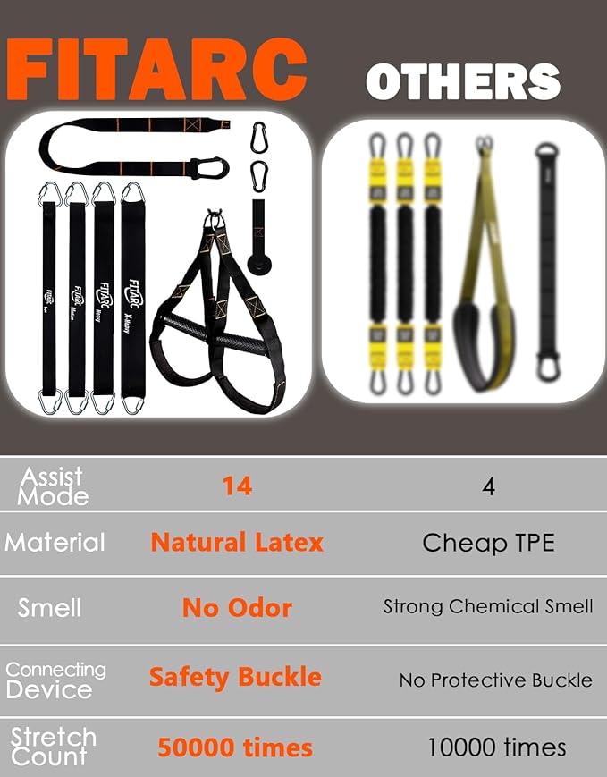 - Durable Natural Latex for Stronger Support - Unlike other assistance bands on the market, that use frabric to cover up TPE bands, we use natural latex bands, which offer superior durability and resistance. The thicker, wider design provides an ultra-strong pull, capable of offering up to 300lbs of assistance, making it ideal for heavier or less powerful individuals.