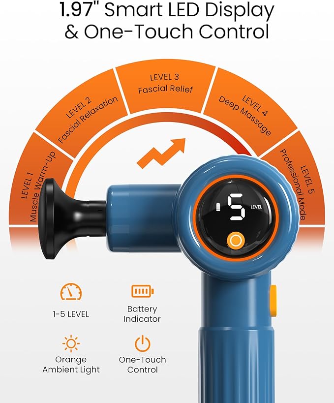 - 【Smart LED Display & One-Touch Control】The Napre massager gun is equipped with a 1.97-inch smart LED display that shows real-time speed and battery level. This massage gun deep tissue offers simple one-touch operation for turning on/off and adjusting its 5 speed levels.