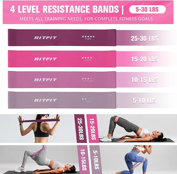 - 4-LEVEL RESISTANCE BANDS: Progressively tone muscles with scientifically calibrated bands: 5-25lb range (Light to X-Heavy). Pair with the 14" pilates ring for targeted sculpting of thighs, arms, core – bands labeled by resistance level for easy selection.