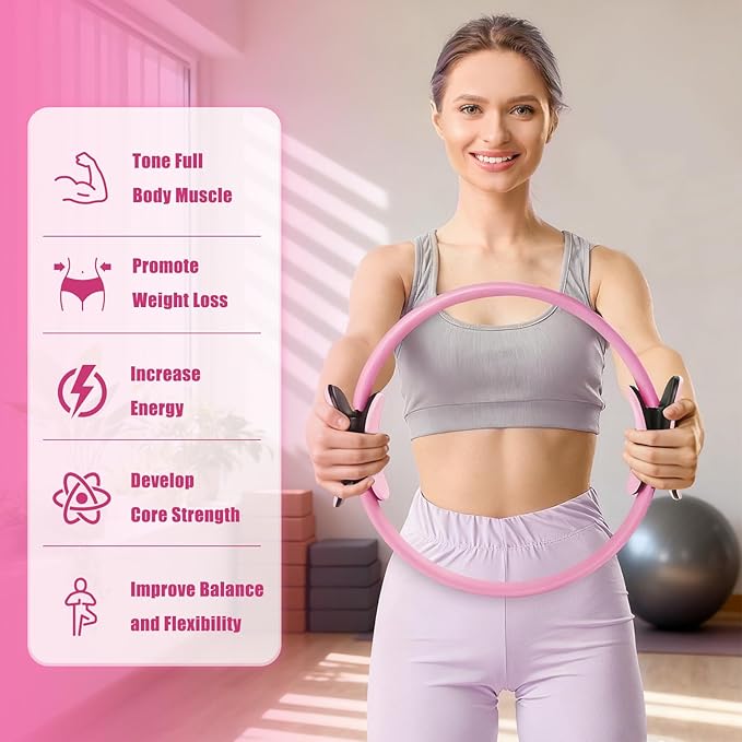 - PREMIUM MATERIALS: The pilates ring features reinforced fiberglass core with soft EVA foam padding – withstands repeated compression without bending or cracking.