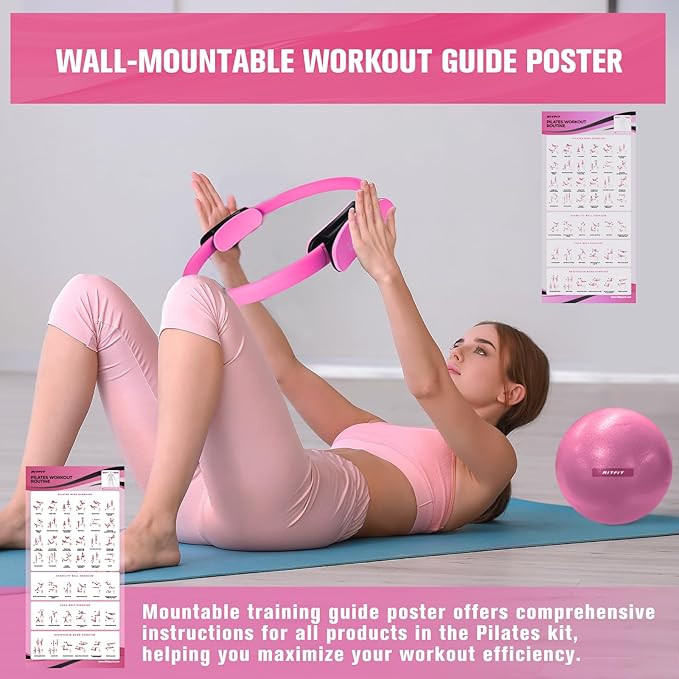 - WORKOUT GUIDE POSTER: The extra-large workout poster includes super detailed exercises for every item in the pilates kit, stick it on your wall or door – no fumbling with phones mid-workout!
