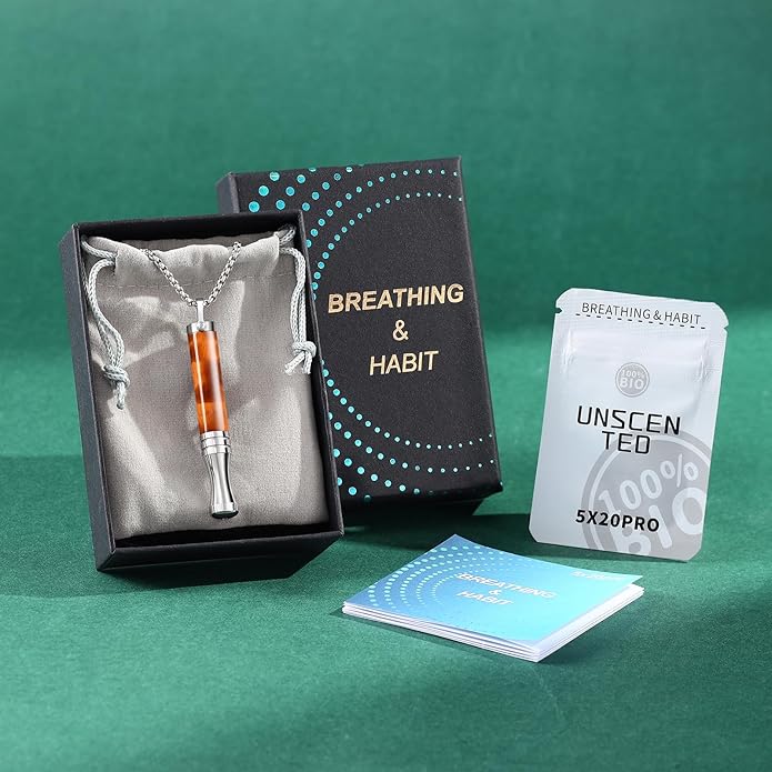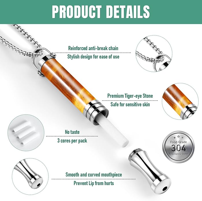 Breathe Free Necklace with Resistance, Breathing Necklace for Stress Relief, Meditation, Mindful Anxiety Breathefree Necklaces Natural Quit Bad Habit, Gift for Women Men (Necklace - Tiger's Eye)