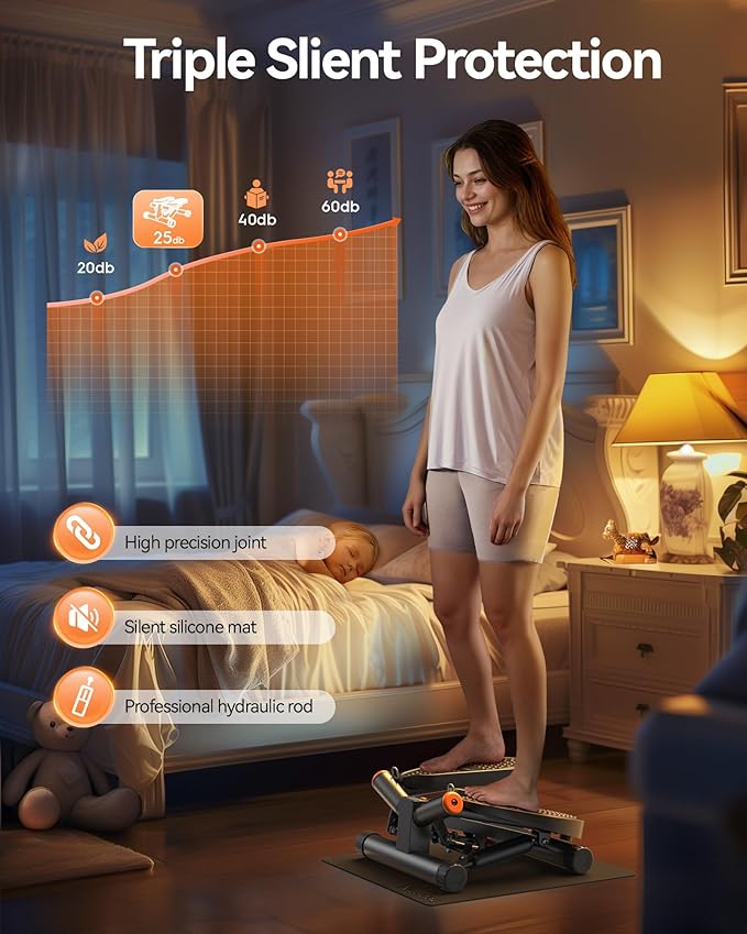 - Triple Silent Protection: Niceday stair stepper has a professional hydraulic rod and high-precision movement joints, while there is a silicone pad below that provides cushioning when stepping, the movement sound is only 25 decibels, so don't worry about waking up the child sleeping at home