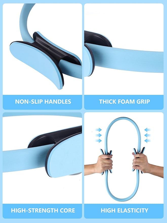 - SOFT GRIP & COMFORTABLE SUPPORT – The fitness circle features padded handles for a secure, non-slip hold, making every move smooth and controlled.