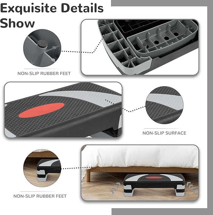 - Textured surface is non-slip, and shock absorbing, the surface is a slip-free, meaning you can have stability with every single set of steps