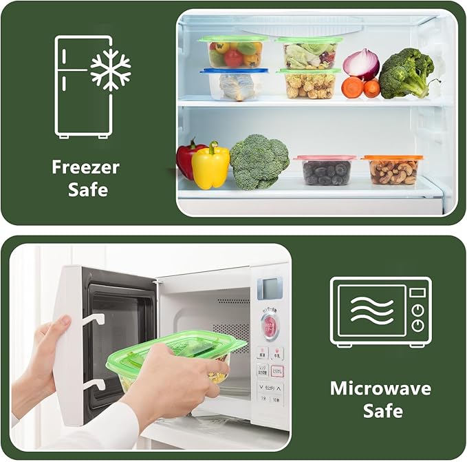 - ✅ Durable & 100% Food Safe: Made from premium, BPA-free plastic that won't crack or stain. They are microwave-safe for reheating, freezer-safe for long-term storage for effortless cleaning. The secure lids help prevent leaks.