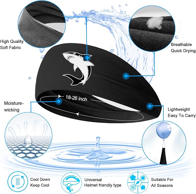 - 【Versatile use】Shark cooling headbands for men is suitable for a variety of sports such as running,skateboard,tennis, workout, basketball, football, yoga, cycling, gym, volleyball, etc. It is ideal for outdoor sports and indoor fitness.Great gift for husband, wife, boy, friend, brother, uncle, father's day, birthday, valentine's day, and christmas, to express your care, thus enhancing your relationships.