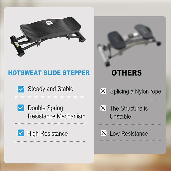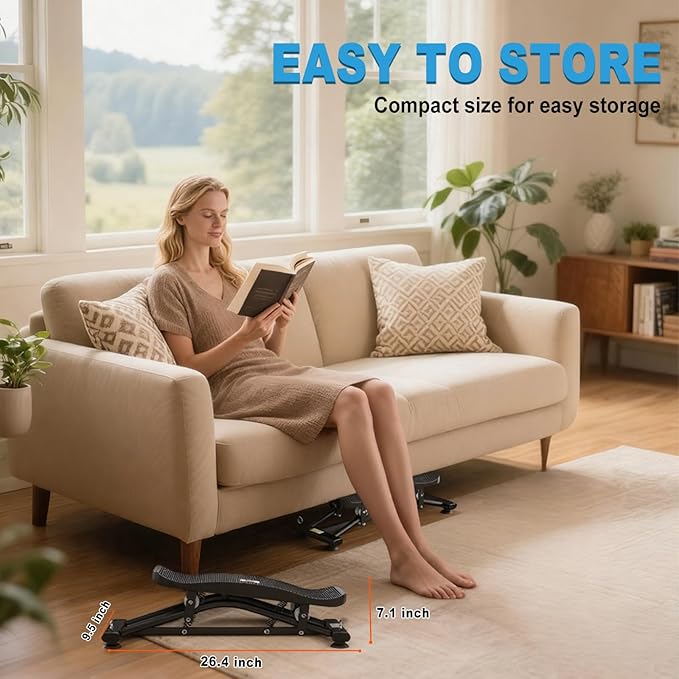 - Easy to Store: This slide stepper features a ultra compact size ( 26.4" L x 9.5" W x 7.1”H), allowing it to tuck neatly under beds, sofas or in closets. Its lightweight build makes storage effortless. ideal for apartments, offices or small workout spaces. No assembly needed, just step, store and go