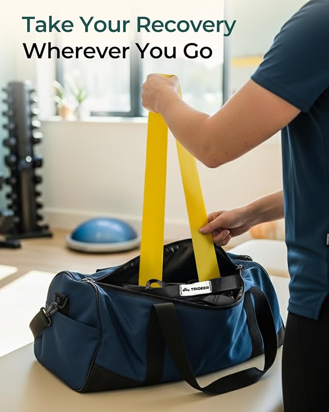 - All-in-One Recovery Kit –Complete set of resistance bands for physical therapy and a stretch strap, covering your full rehab journey: from assisted walking to strength training.